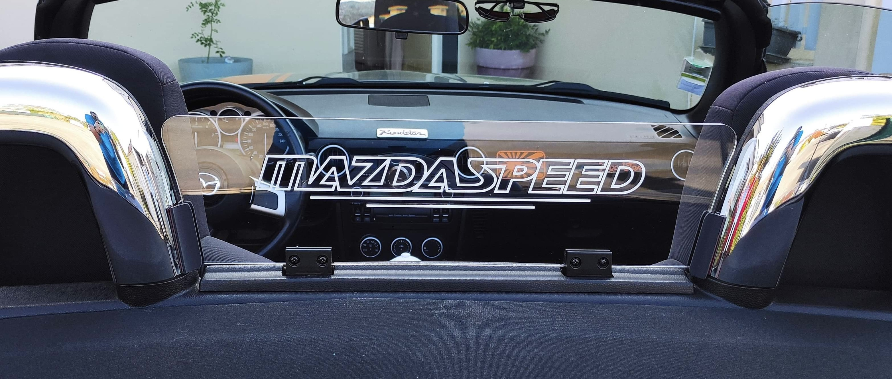 Nous vendons des saute-vents pour Mazda MX5 en plexiglass de 6mm.